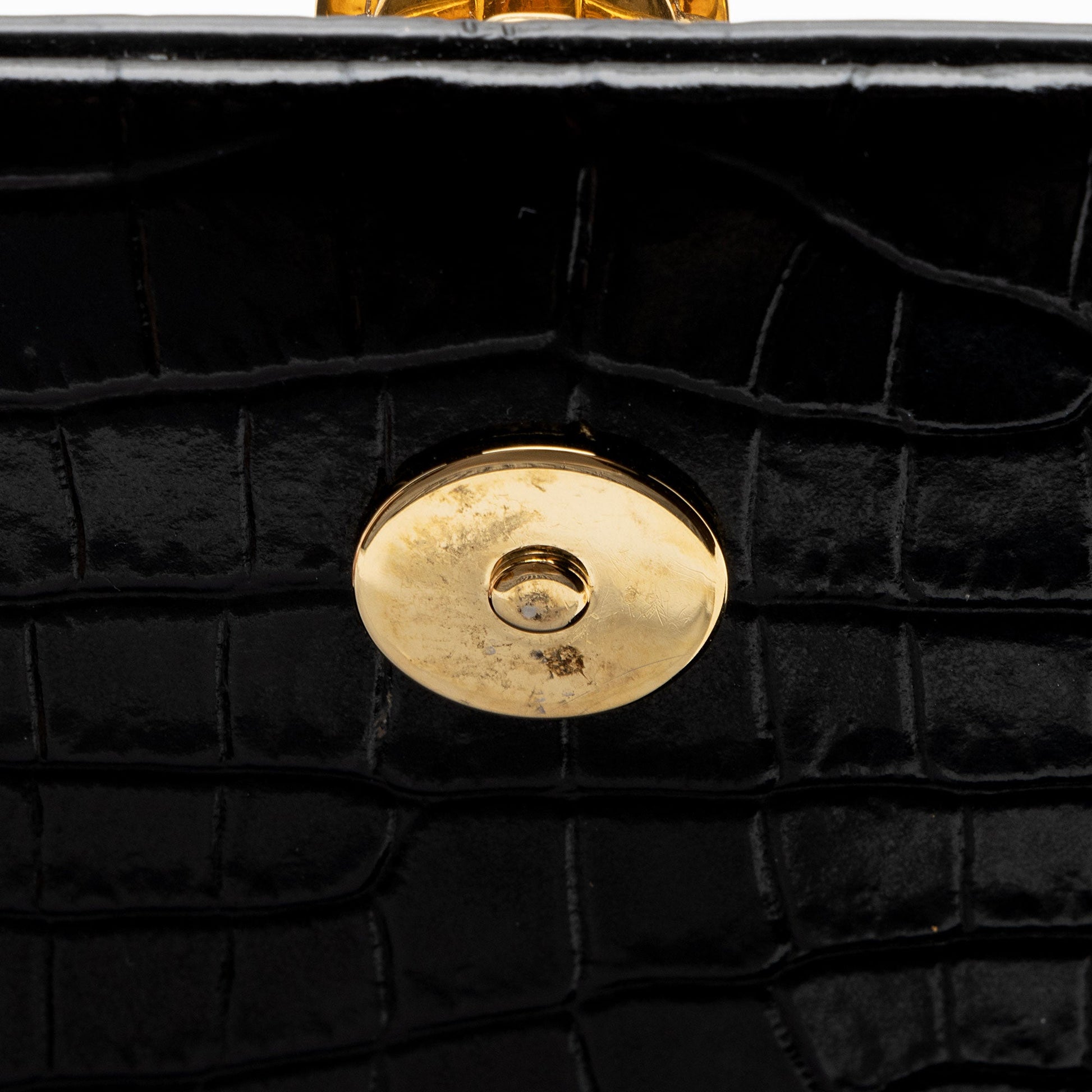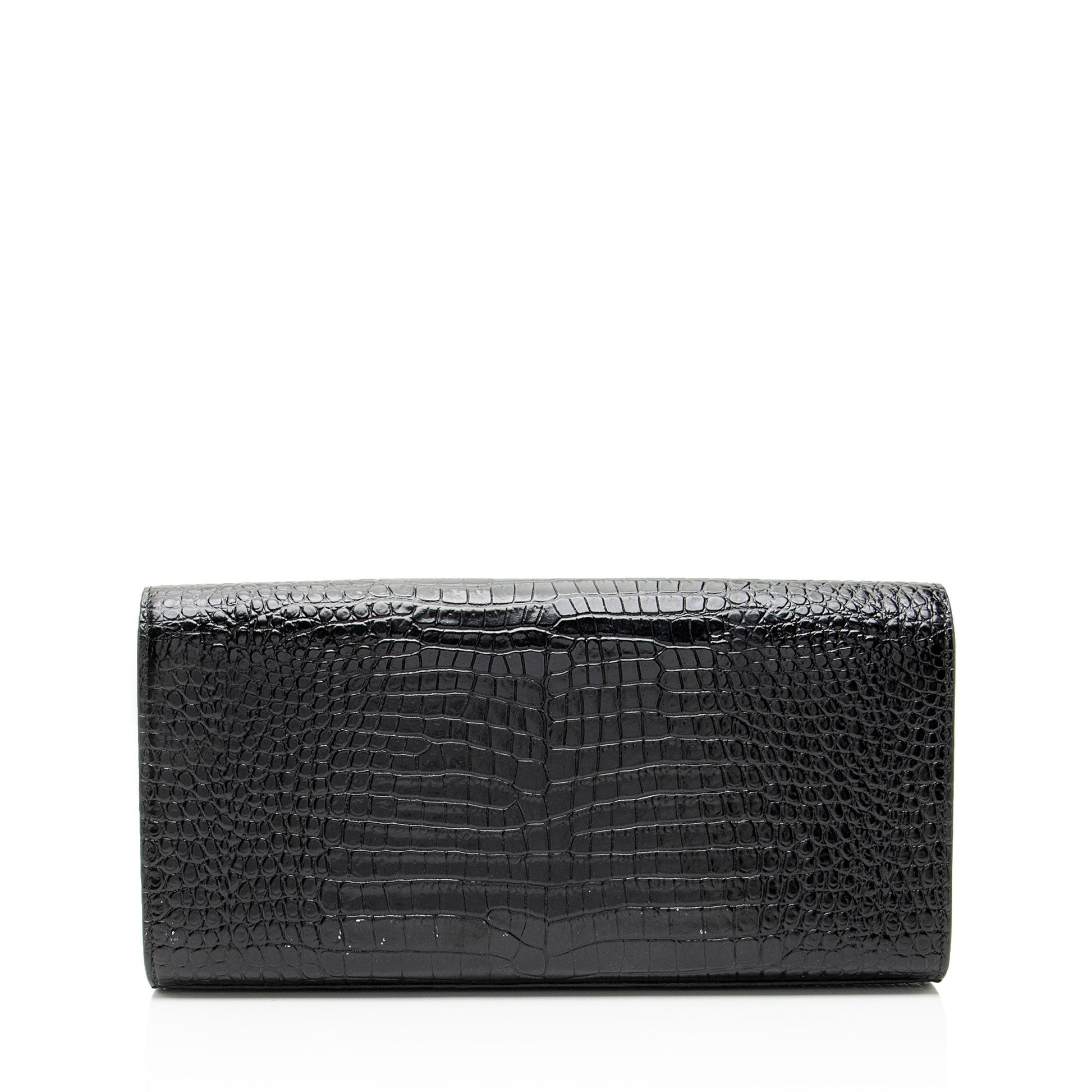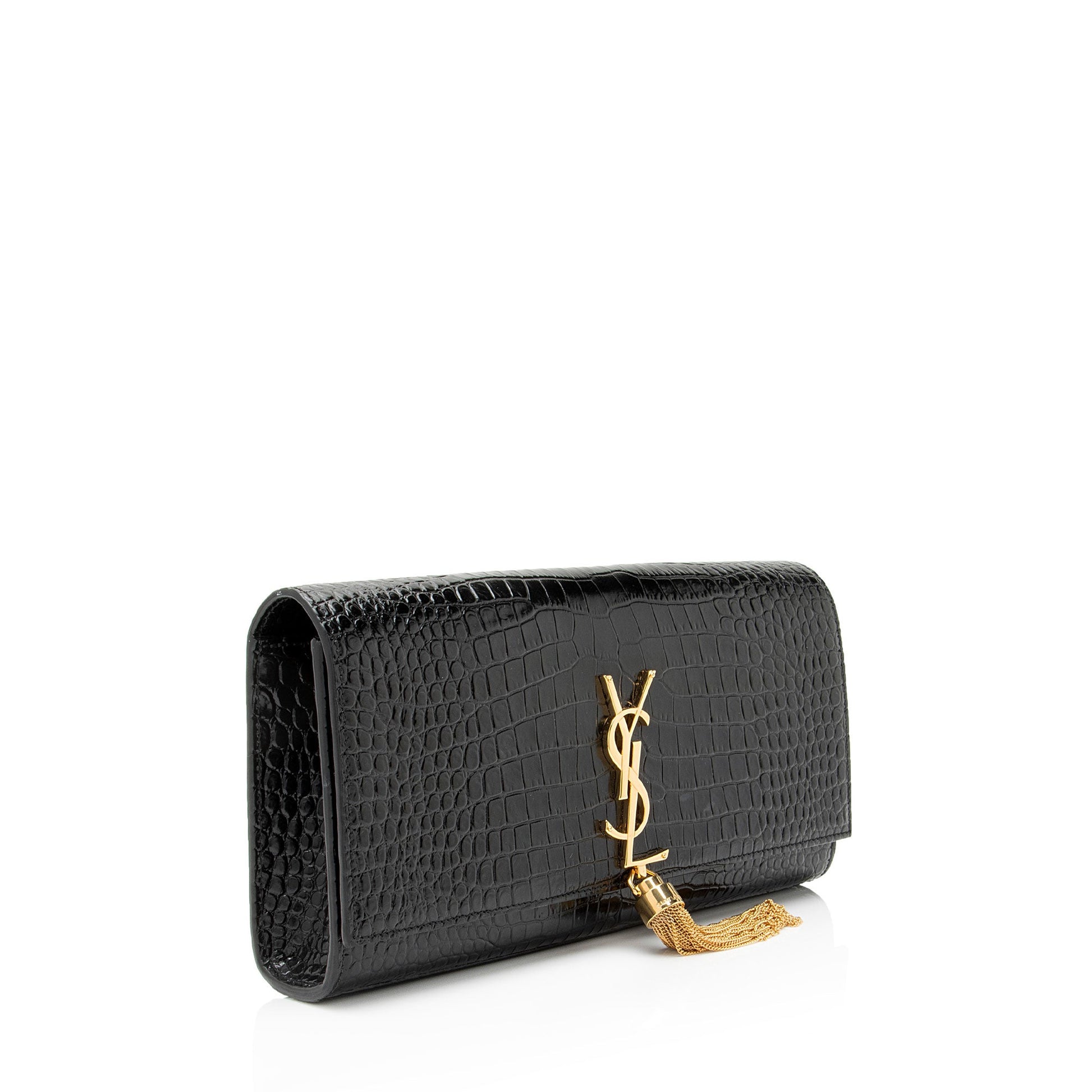 Saint Laurent Croc Embossed Leather Monogram Kate Tassel Clutch Handba