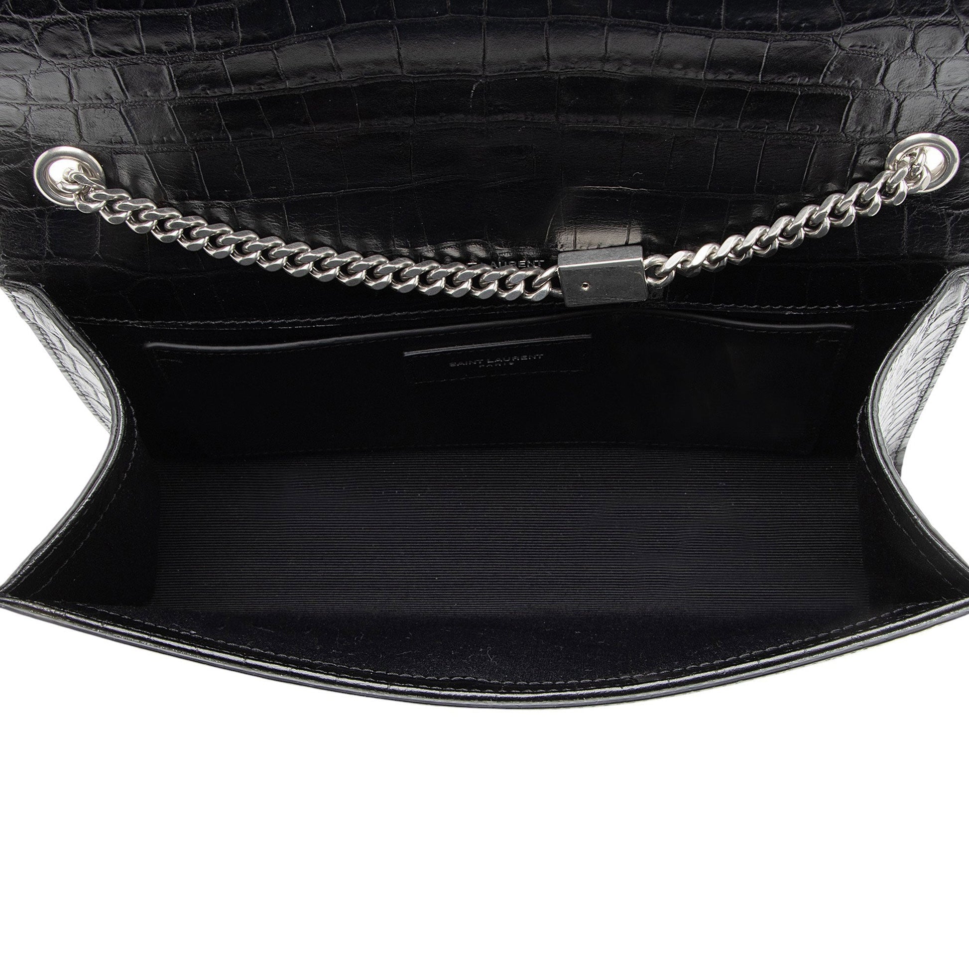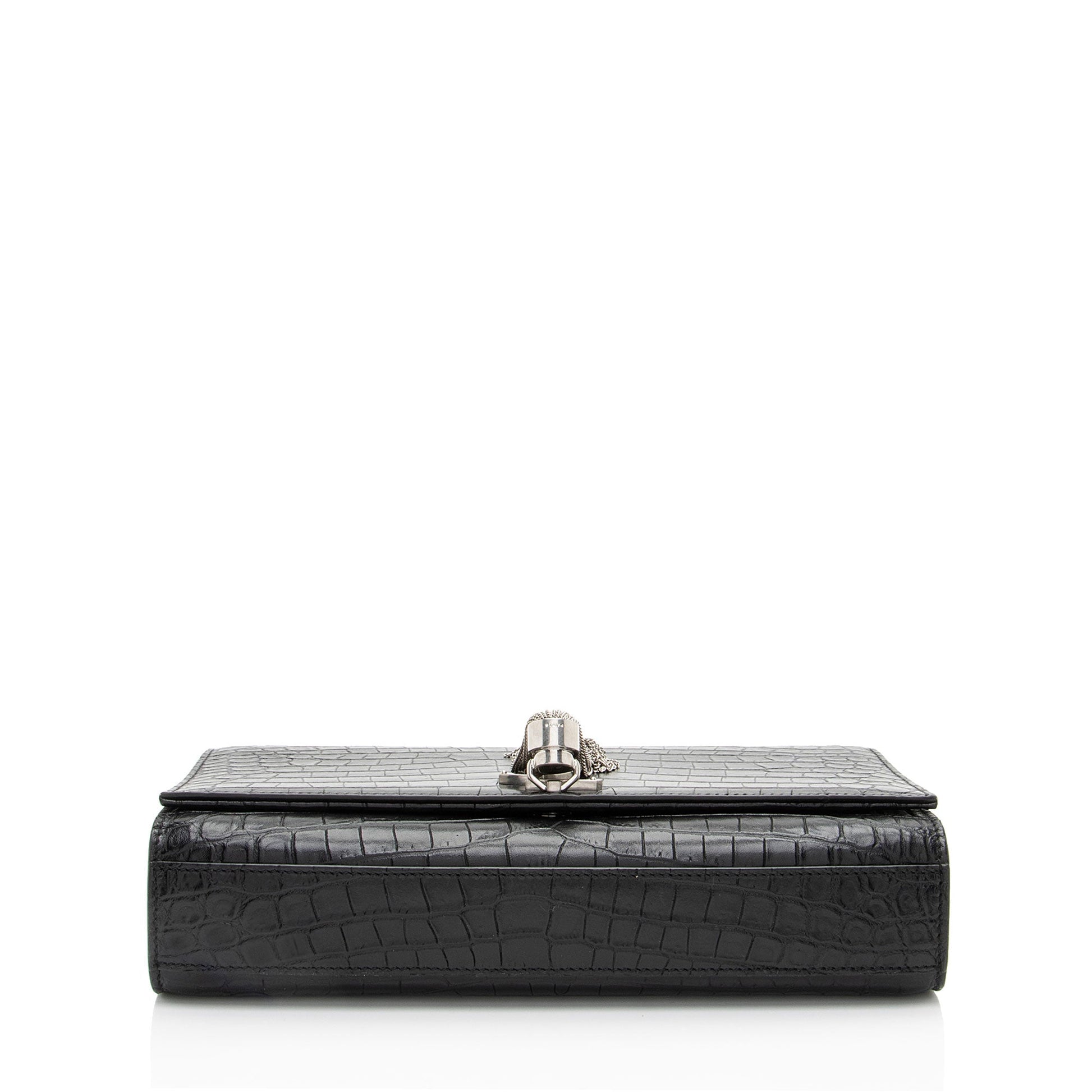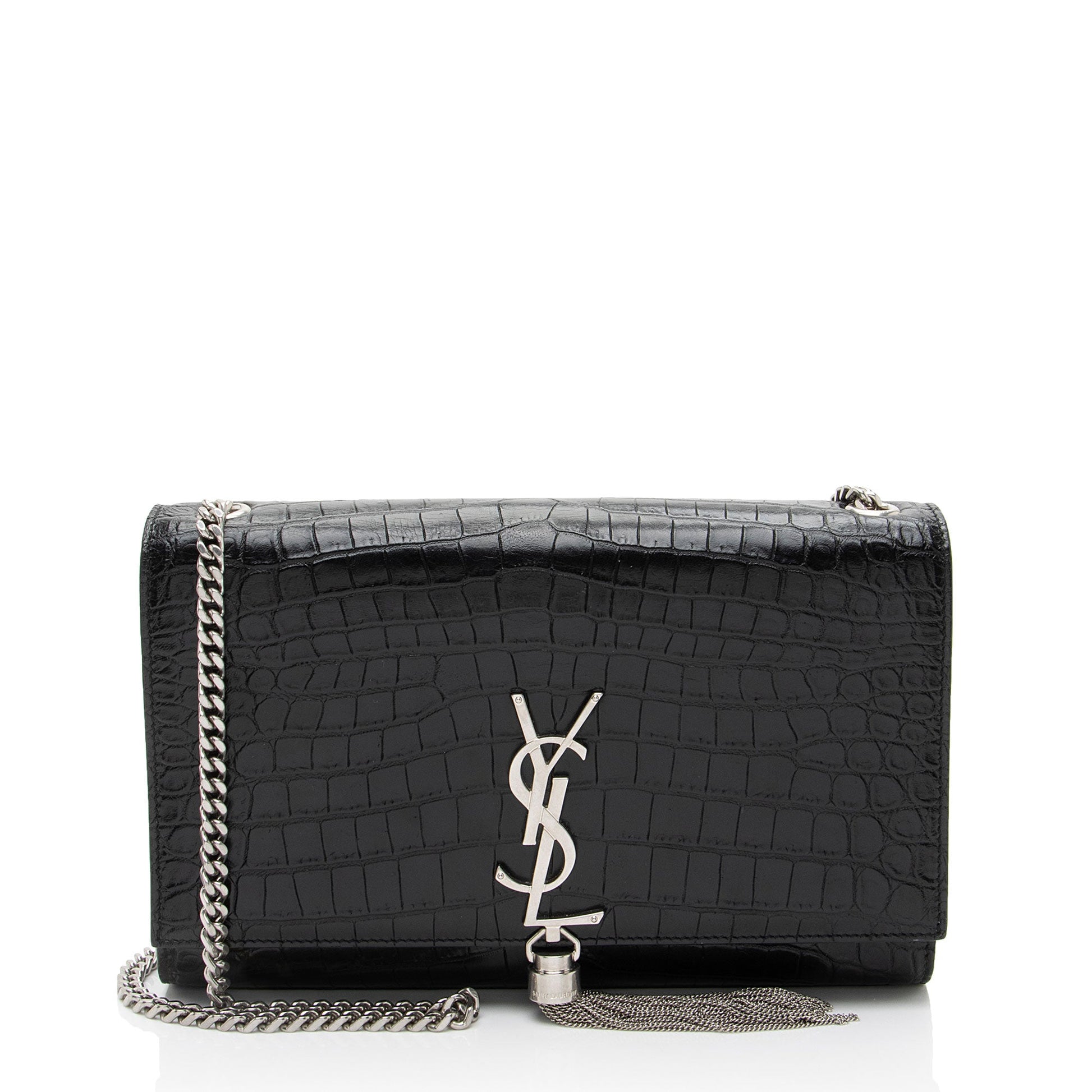 Saint Laurent Croc Embossed Leather Monogram Kate Tassel Medium Should
