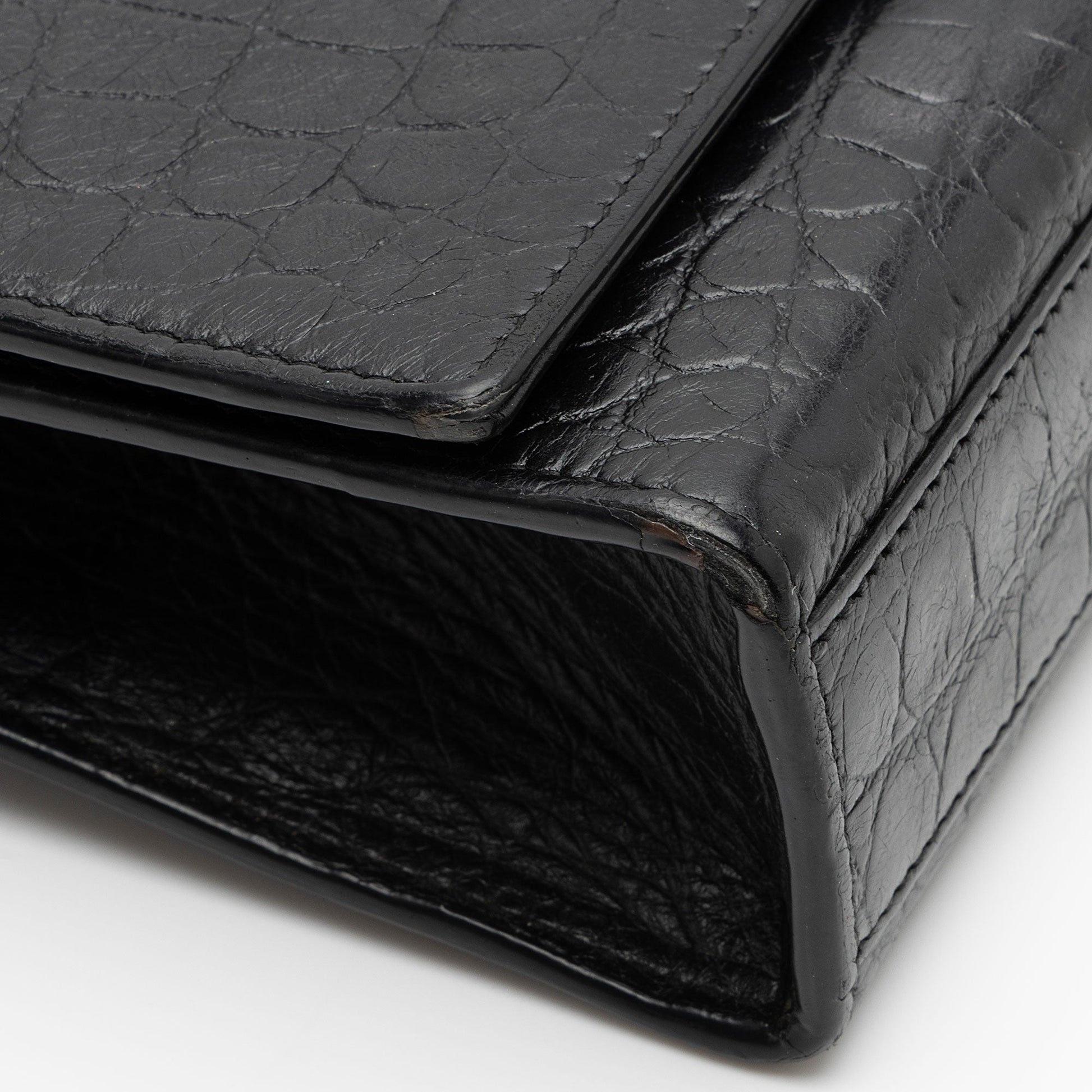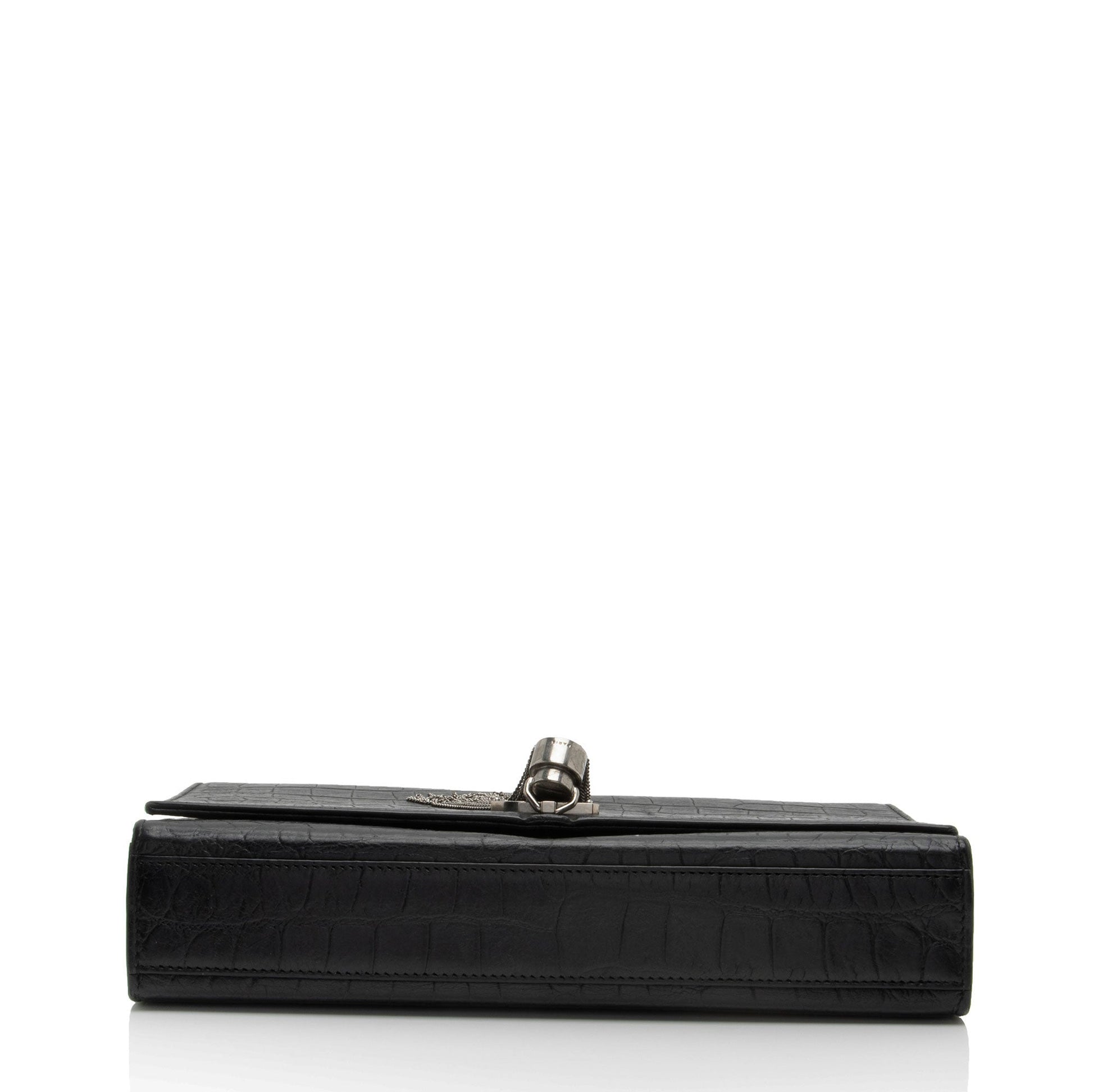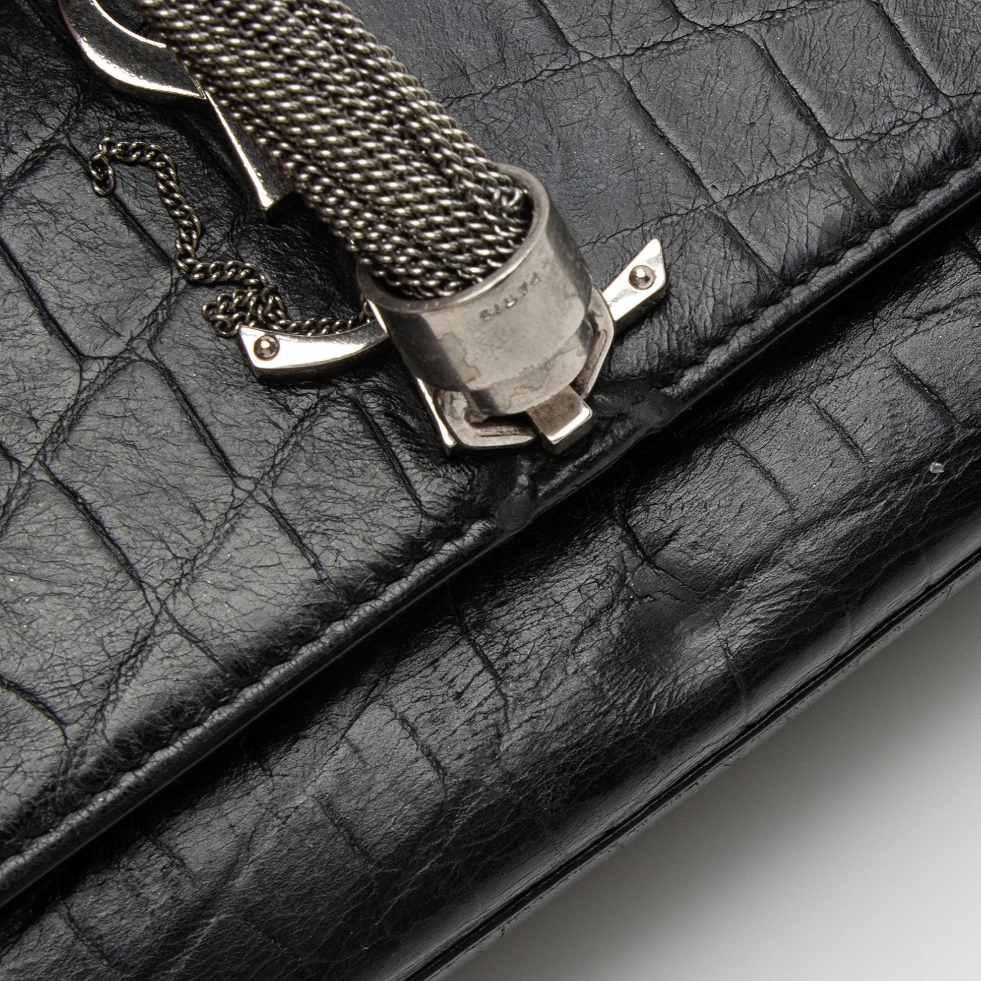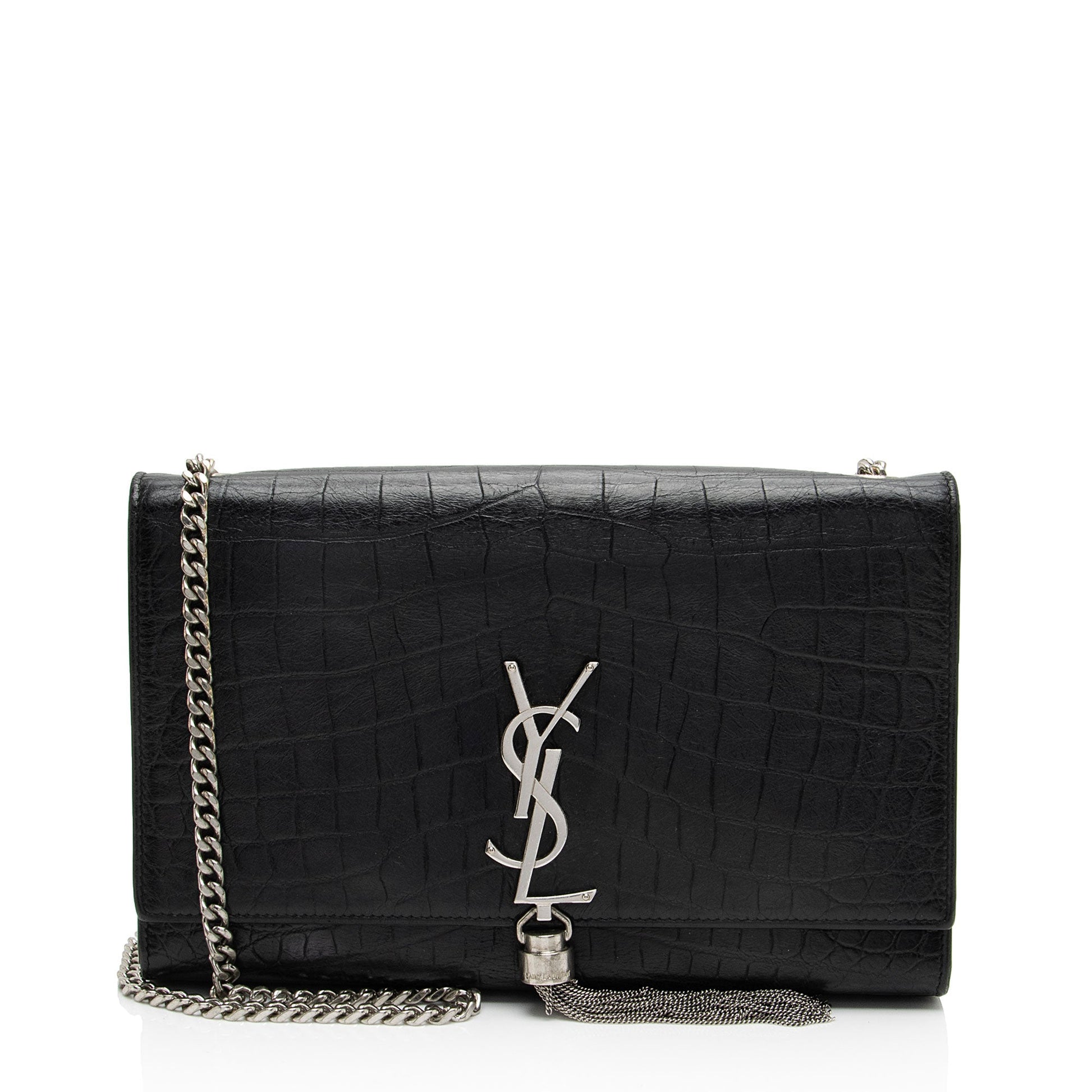 Saint Laurent Croc Embossed Leather Monogram Kate Tassel Medium Should