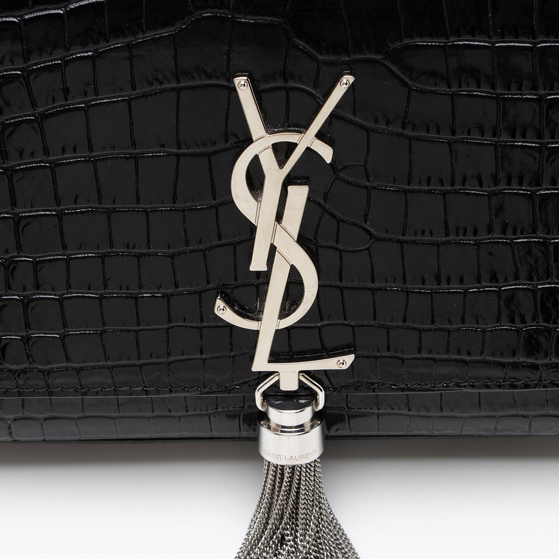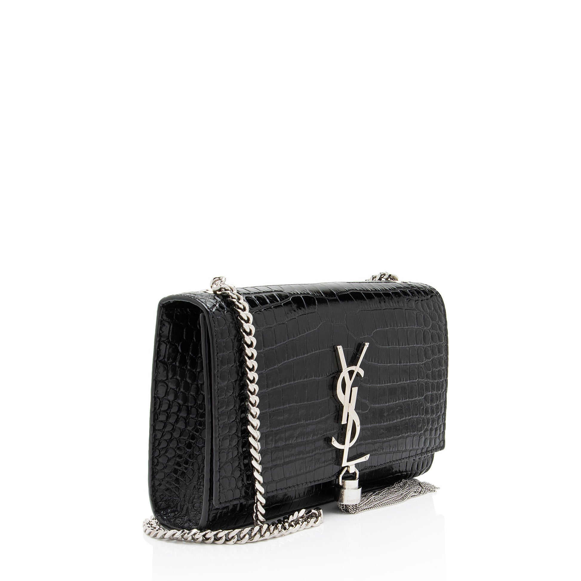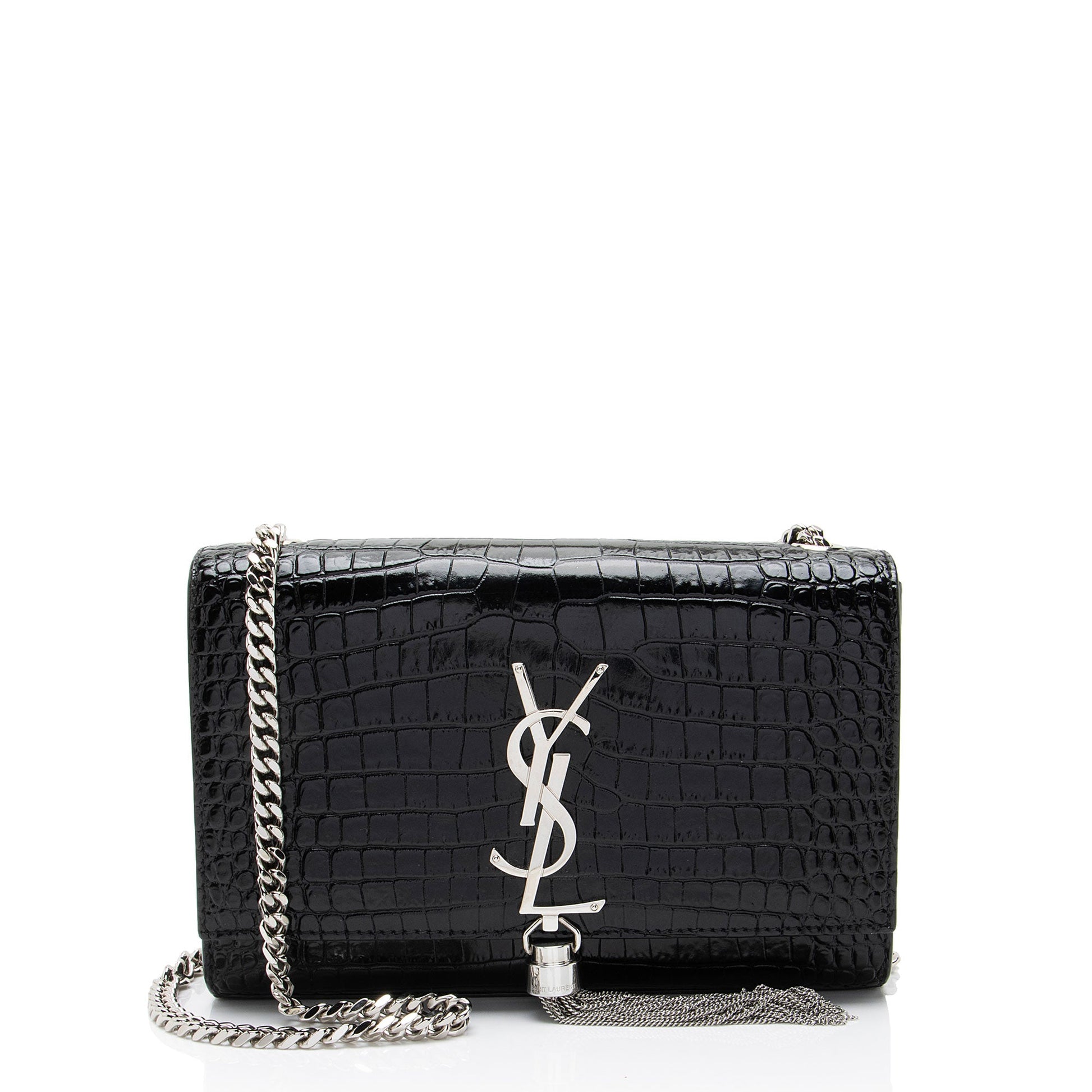 Saint Laurent Croc Embossed Leather Monogram Kate Tassel Small Shoulde