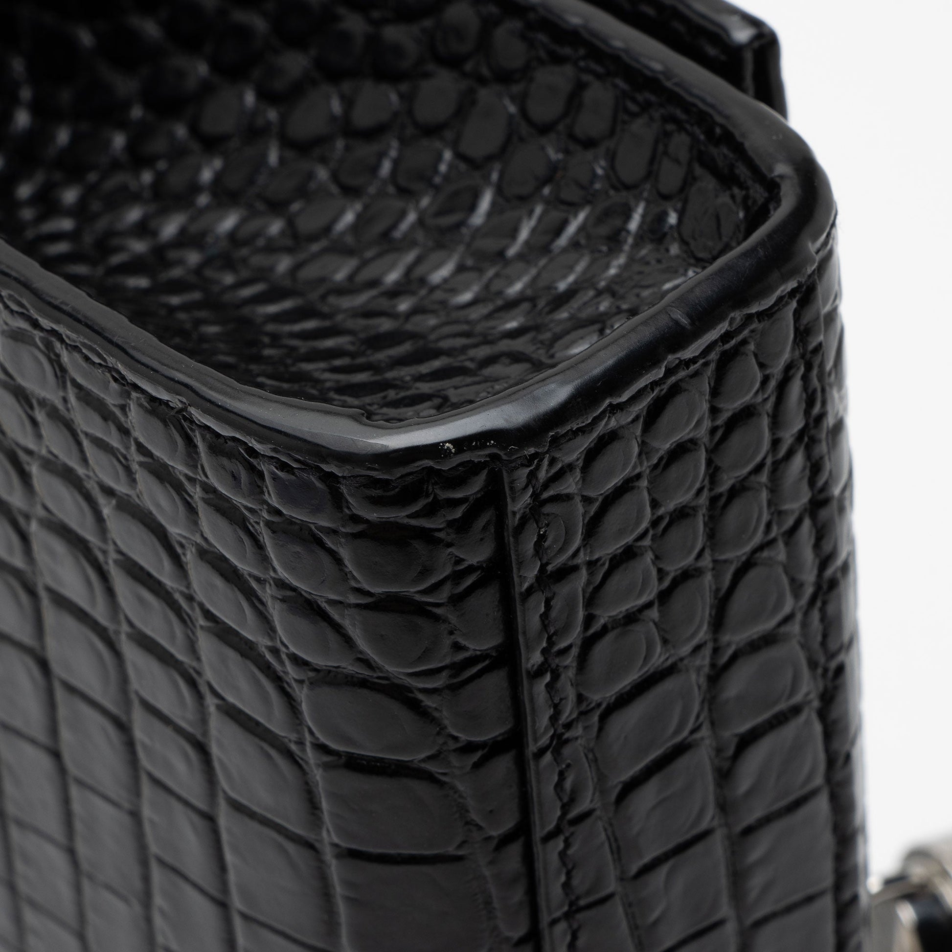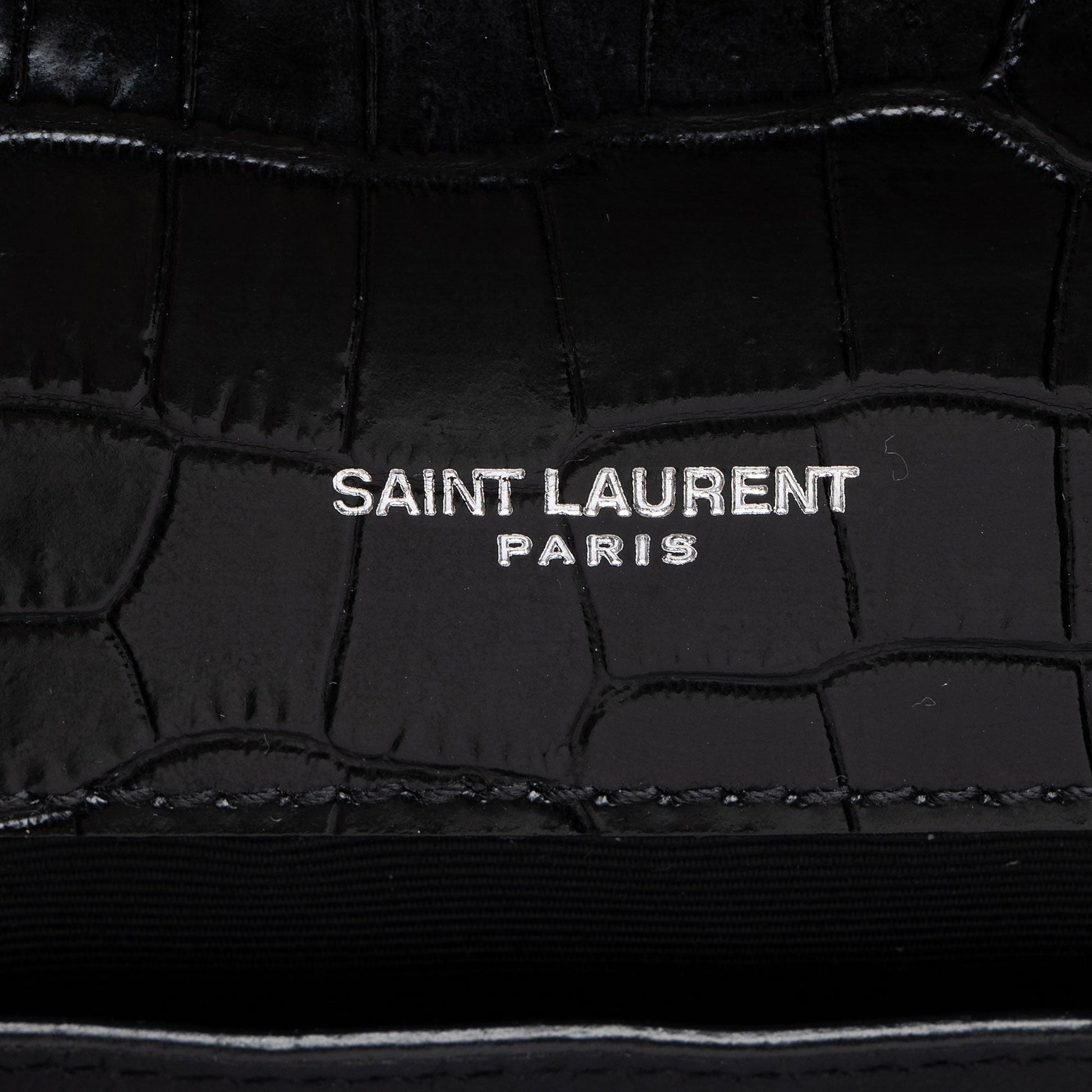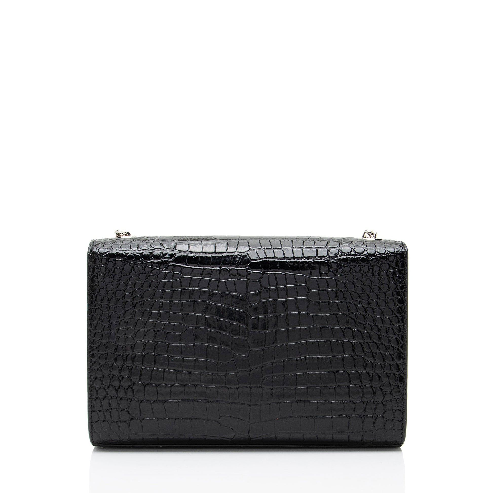 Saint Laurent Croc Embossed Leather Monogram Kate Tassel Small Shoulde