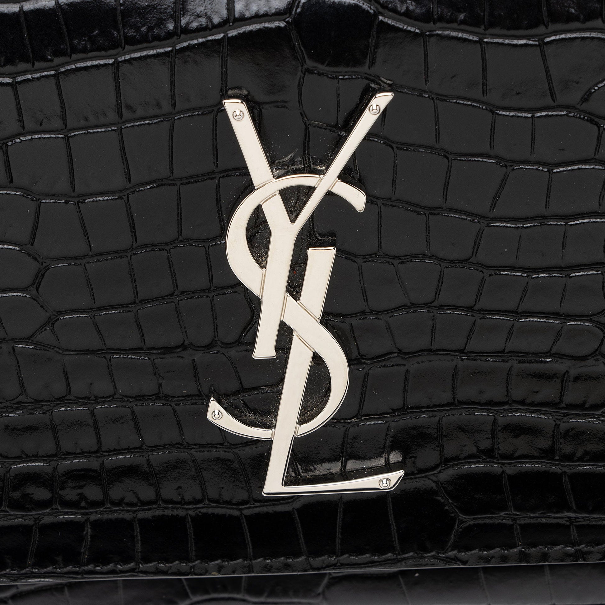 Saint Laurent Croc Embossed Leather Monogram Sunset Chain Wallet Handb