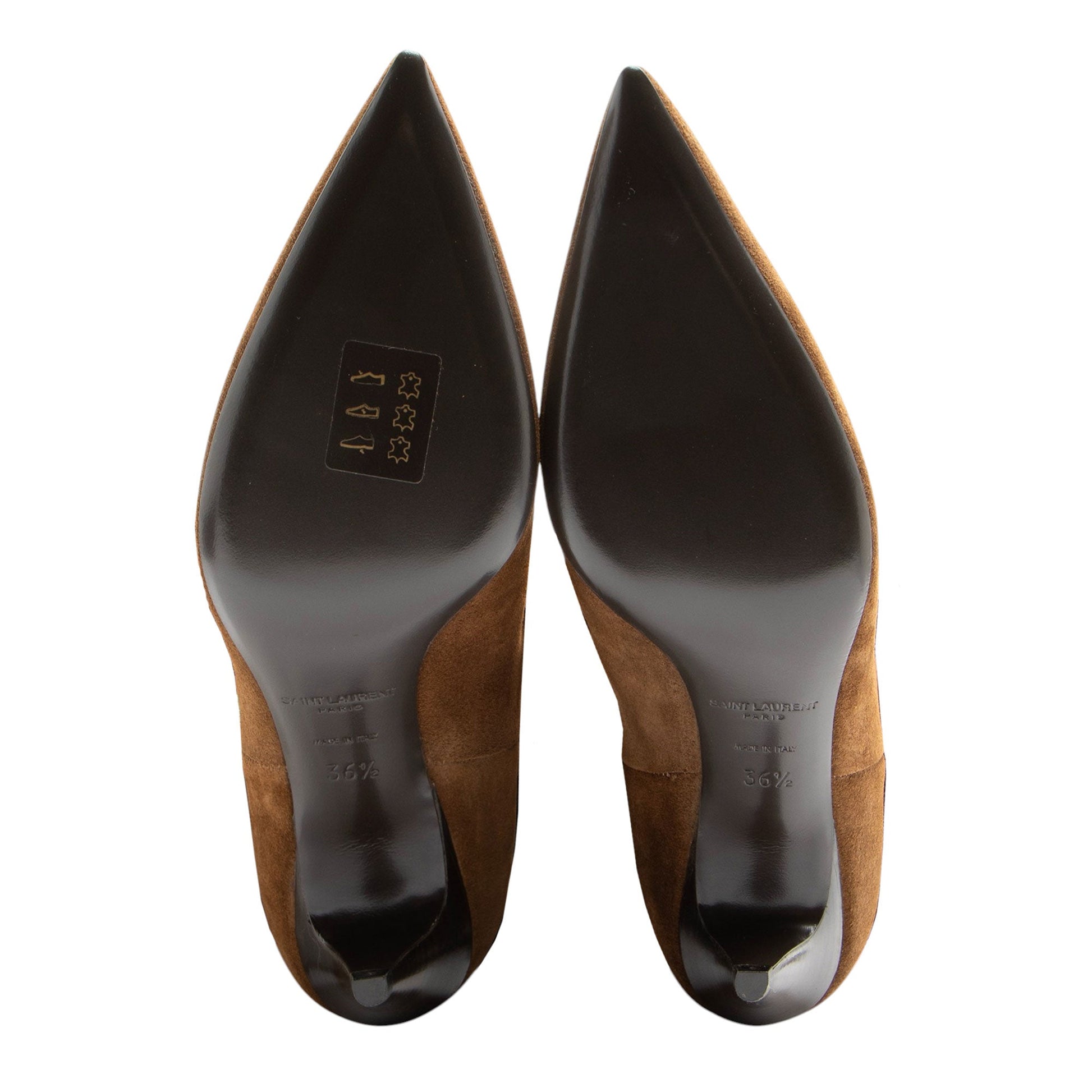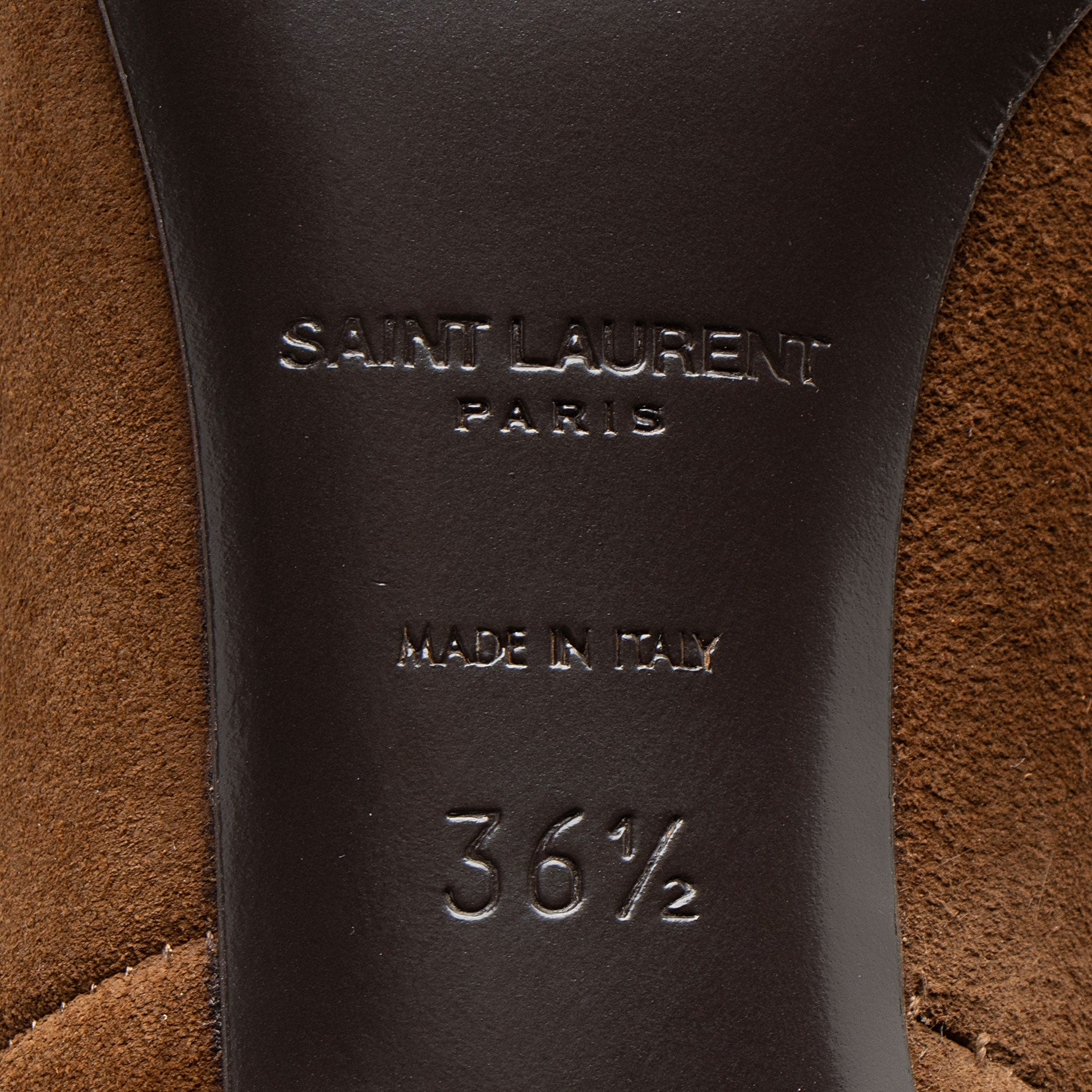 Saint Laurent Suede Fringe Charlotte Ankle Boots - Size 6.5 / 36.5 Han